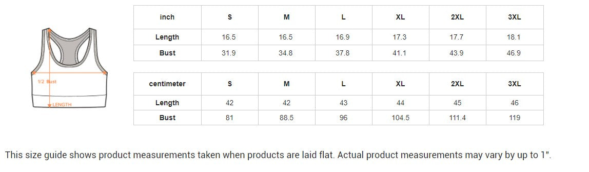 This size guide shows product measurements taken when products are laid flat. Actual product measurements may vary by up to 1".