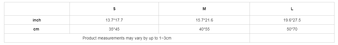 | cm | 35*45 | 40*55 | 50*70 |