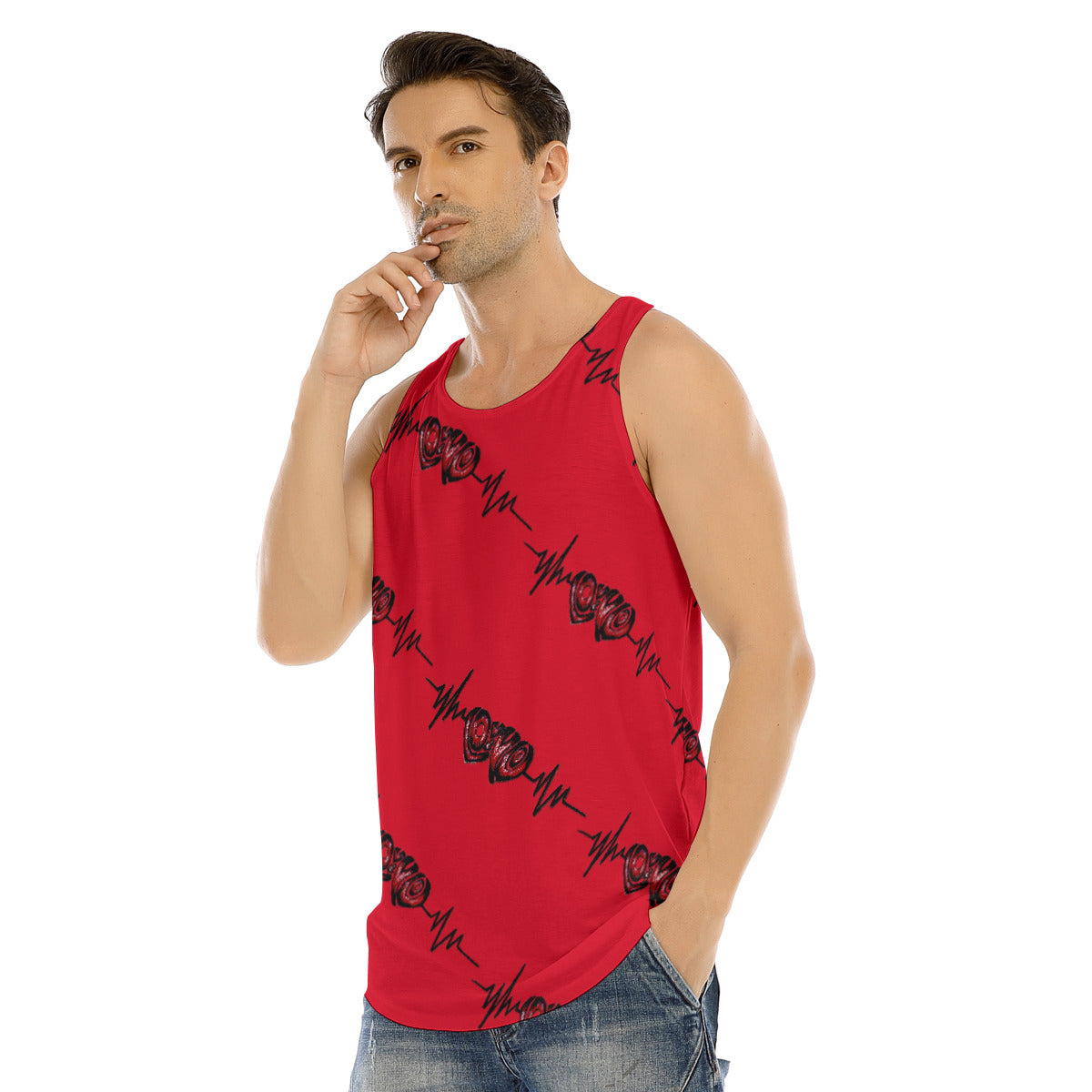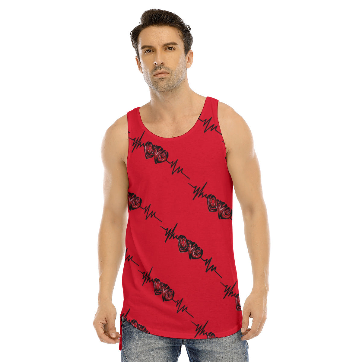 All-Over Print Men's Curved Hem Long Tank Top