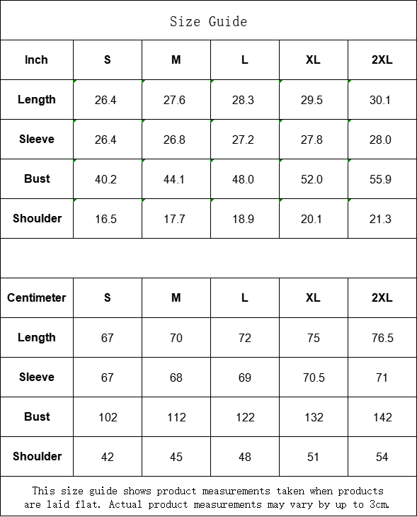 This size guide shows product measurements taken when products are laid flat. Actual product measurements may vary by up to 3cm.