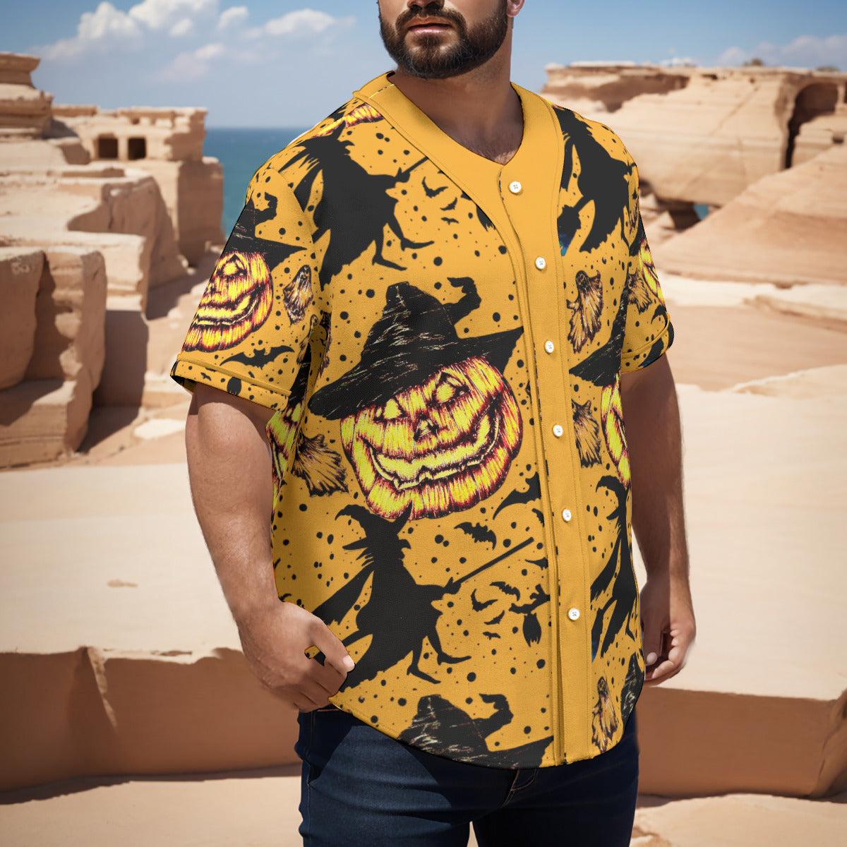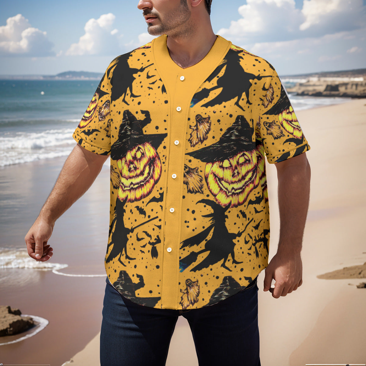 All-Over Print Men's Short Sleeve Baseball Jersey With Pinstripes