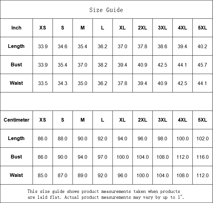 | Centimeter | XS | S | M | L | XL | 2XL | 3XL | 4XL | 5XL |