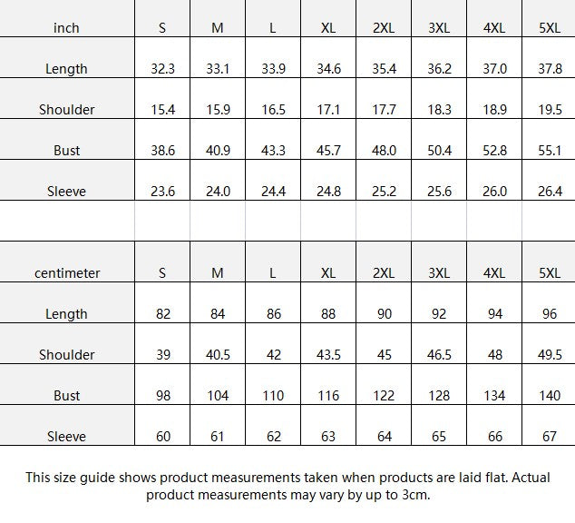 | centimeter | S | M | L | XL | 2XL | 3XL | 4XL | 5XL |