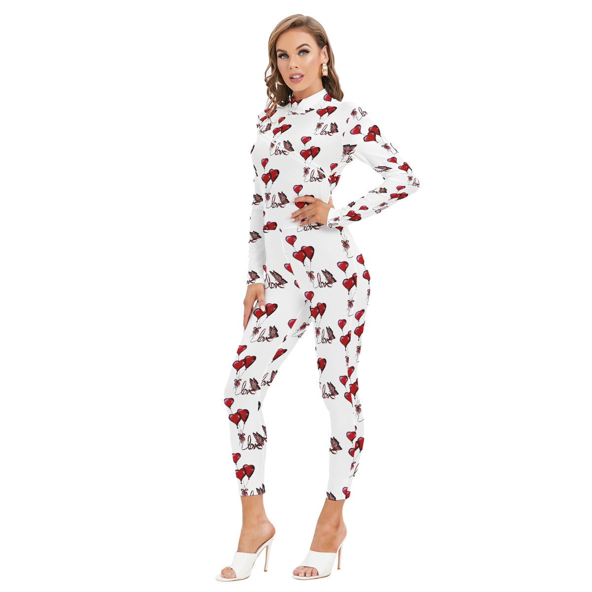 All-Over Print Women's Long-sleeved High-neck Jumpsuit With Zipper
