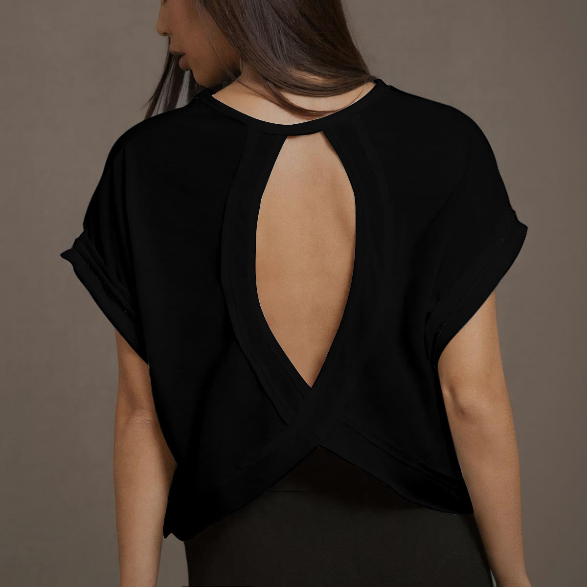 Designed for an active lifestyle, this open-back, crossover T-shirt lets you move confidently and stylishly. Made from cotton-touch polyester, it combines the soft feel of natural cotton with the breathable durability of high-performance fabrics. The relaxed fit and rolled cuffs create a relaxed look at the front, while the crossover drape at the back creates a bold, flowing effect—perfect for layering over a sports bra during yoga, Pilates, or athleisure.