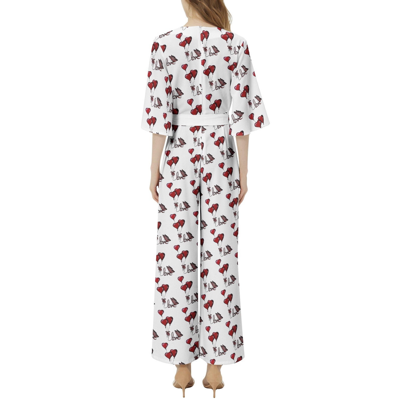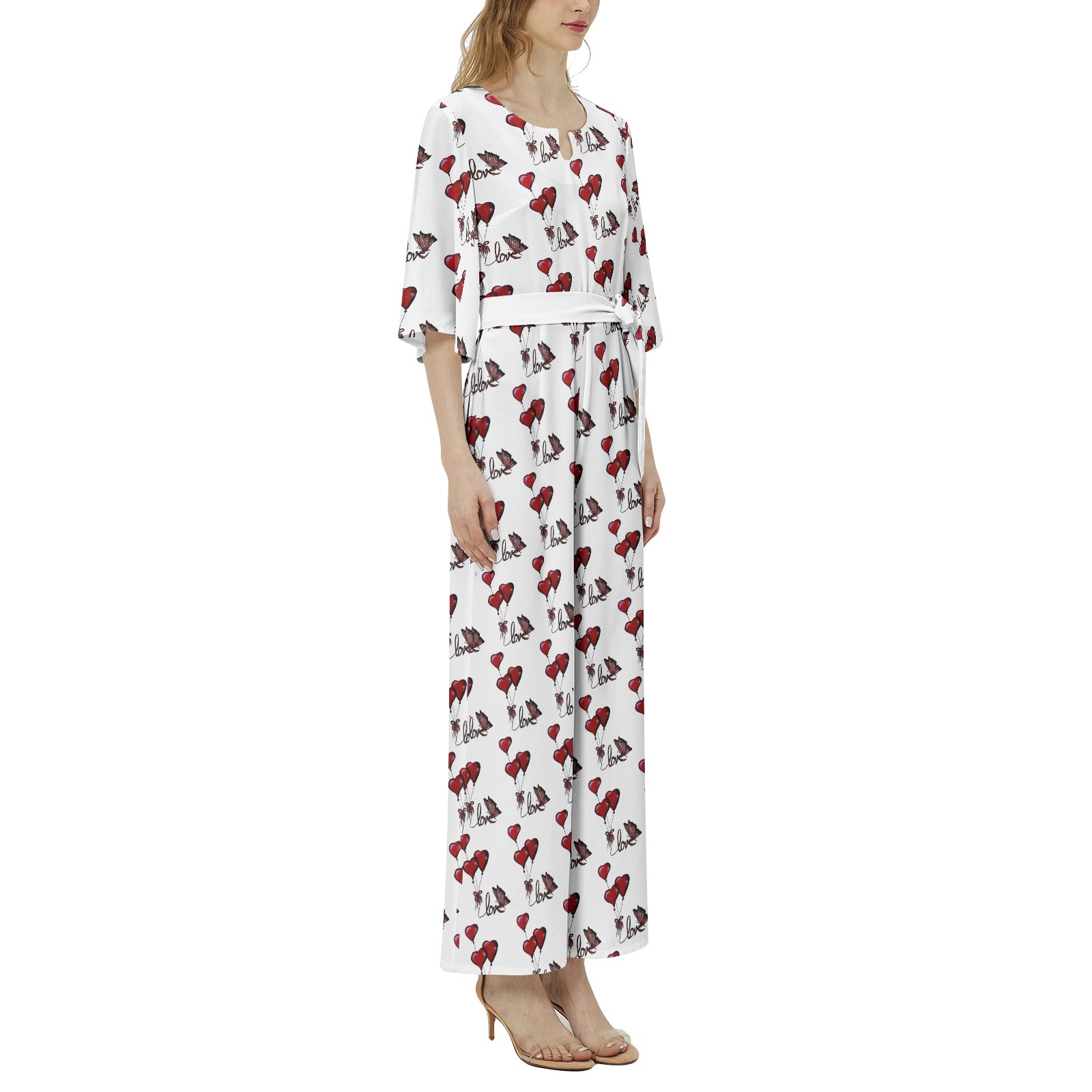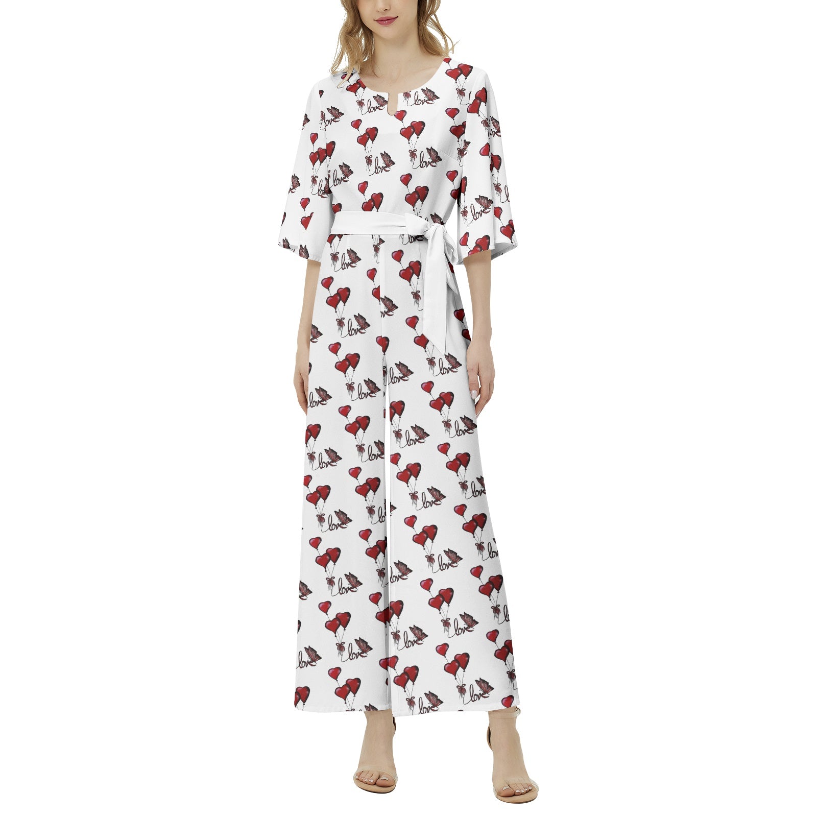 Dolman sleeve, Notch neck, High waist, Loose Wide pant legs, Belted jumpsuit