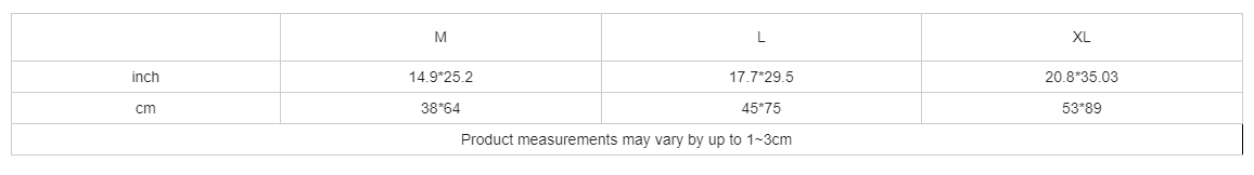 | cm | 38*64 | 45*75 | 53*89 |