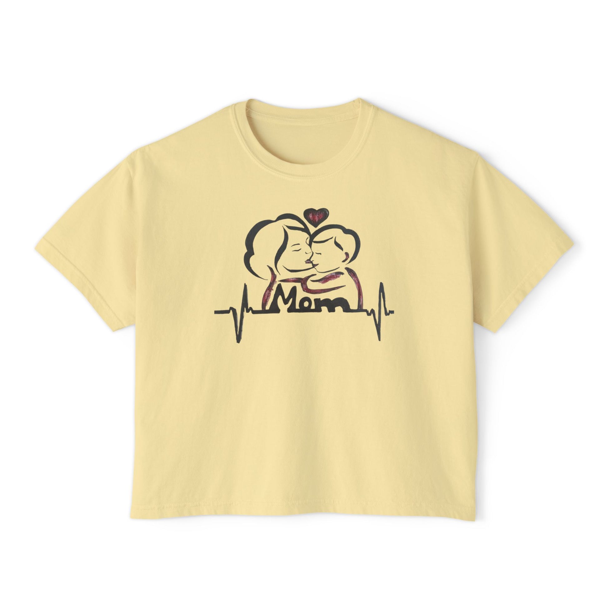 Mom Heartbeat Boxy Tee, Gift for Mom, Mother's Day Shirt, Family Love Tee, Cute Casual Wear, Heartbeat Graphic Top