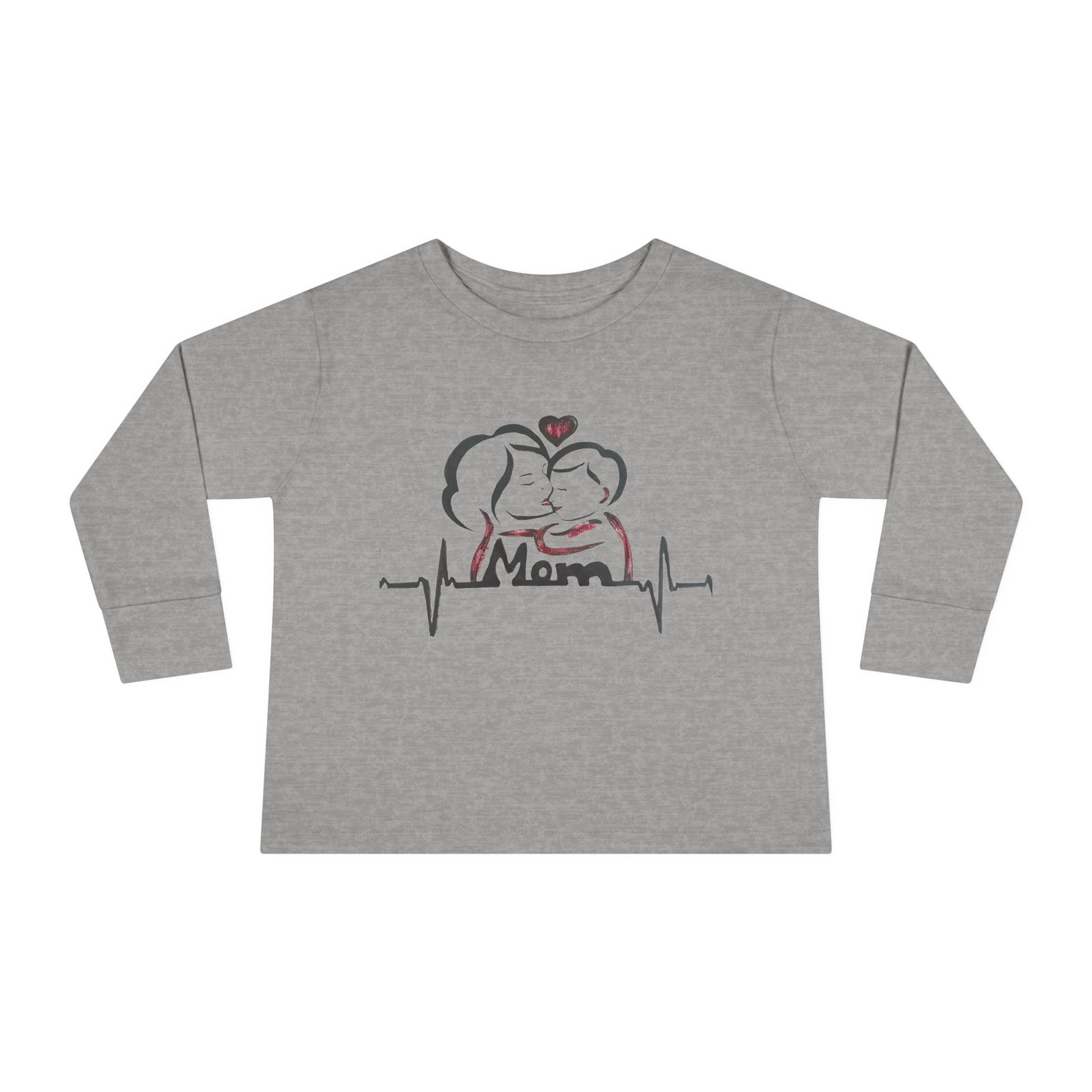 Mommy's Little Heartbeat Toddler Long Sleeve Tee, Cute Kids Shirt, Gifts for Moms, Family Matching Outfit, Baby Shower Gift, Everyday Wear
