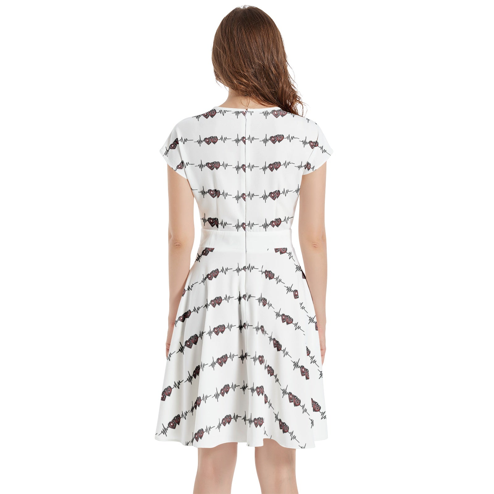 Short batwing sleeve, Ruched waist, Flared hem, Back hideen zipper, Women's elegant short dress