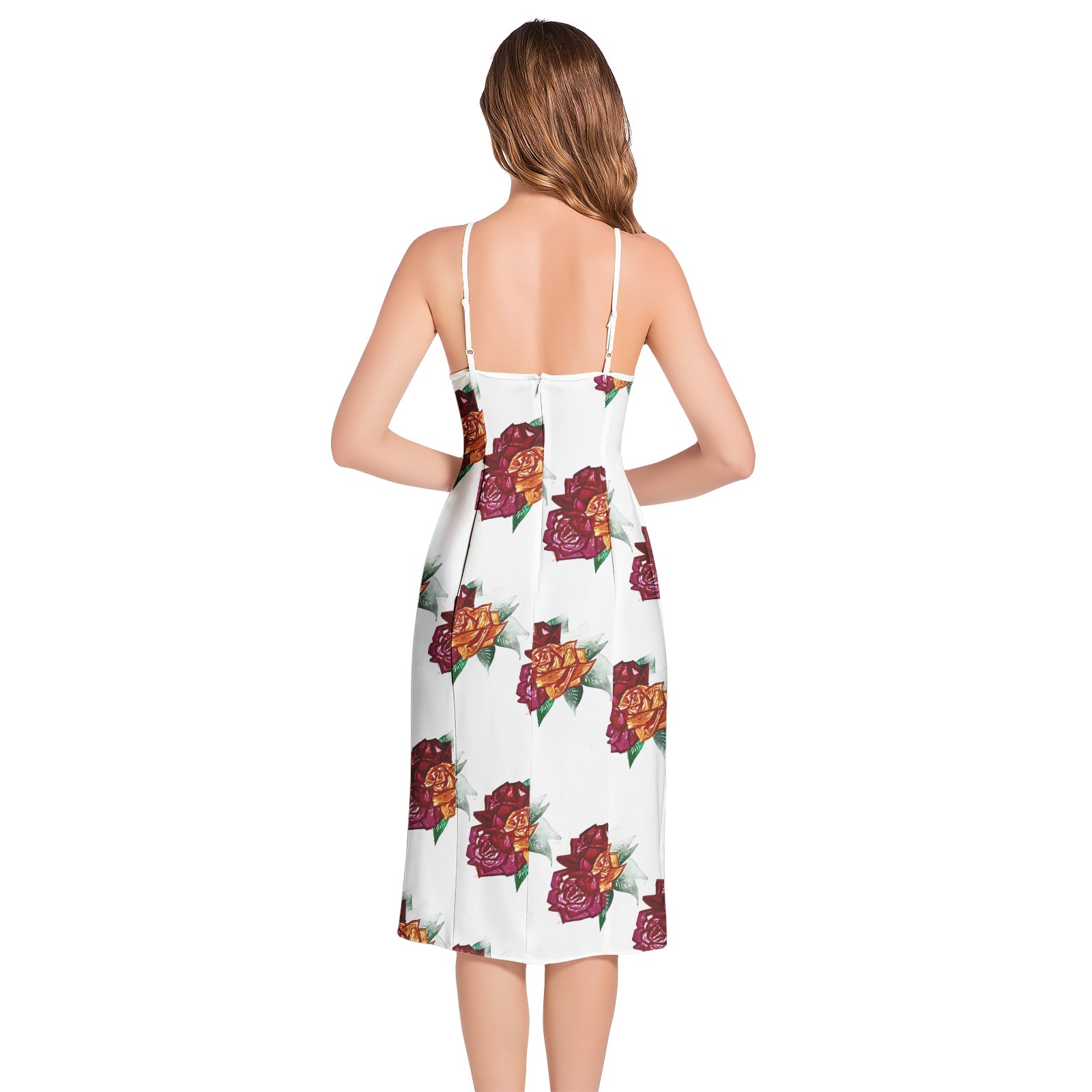 Spaghetti Strap, V-Neck, Sleeveless, High waist, Slit thigh, Back hidden zipper, Women's cami midi dress