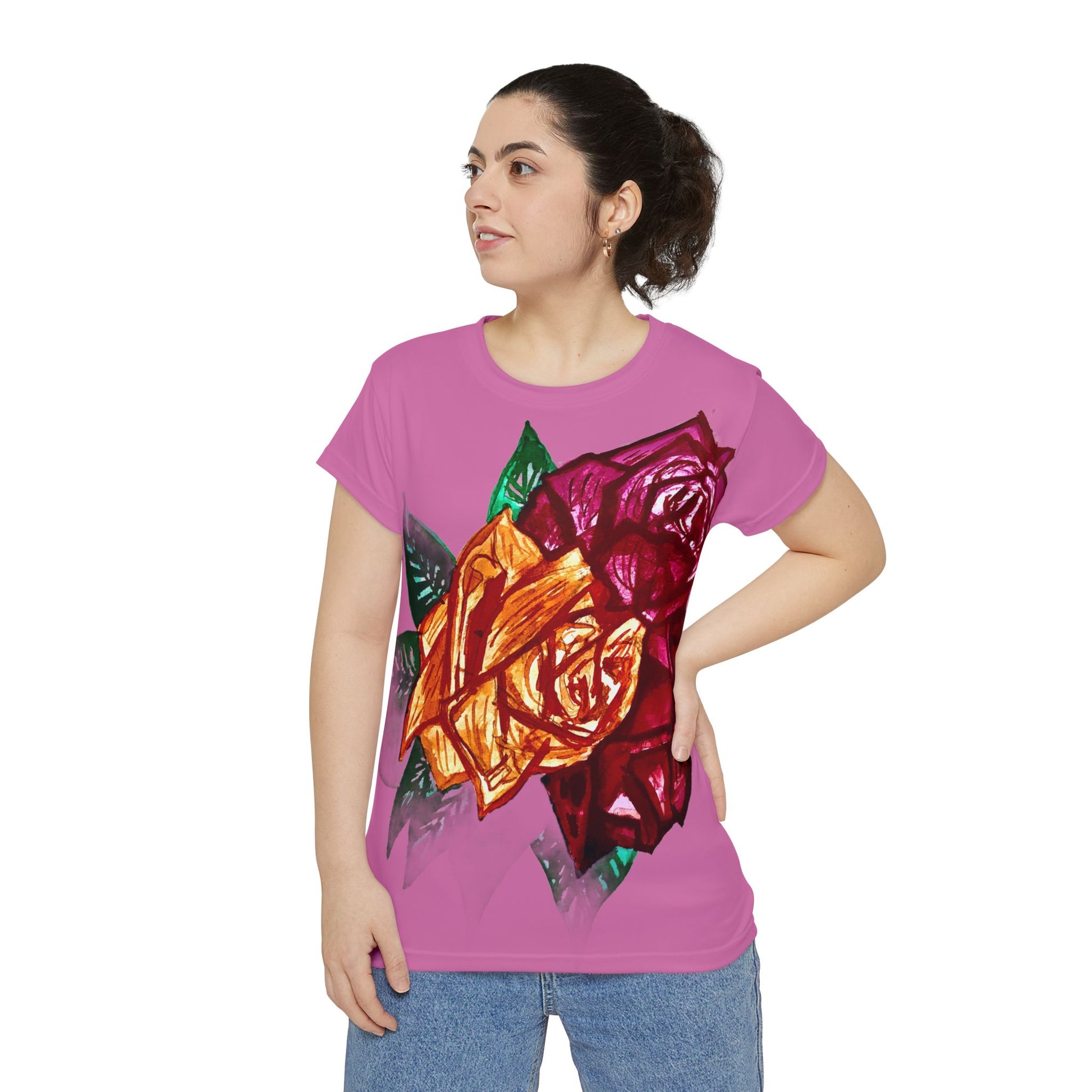 Made to stand out, these all-over-print tees for women are as comfy as they are stylish. They're made with 95% Polyester and 5% Spandex (190GSM) and they're a perfect choice whether as loungewear or leisurewear. Available in sizes up to 4XL.